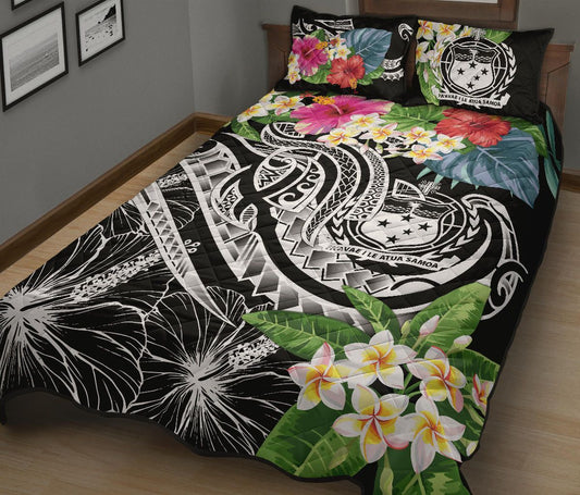 Polynesian Samoa Quilt Bed Set - Summer Plumeria (Black)