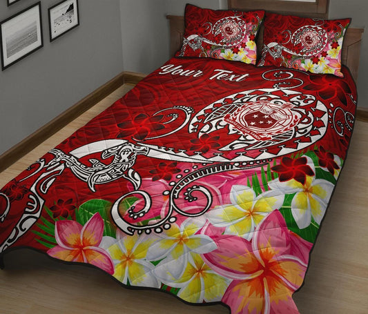 Samoa Custom Personalised Quilt Bed Set - Turtle Plumeria (Red)