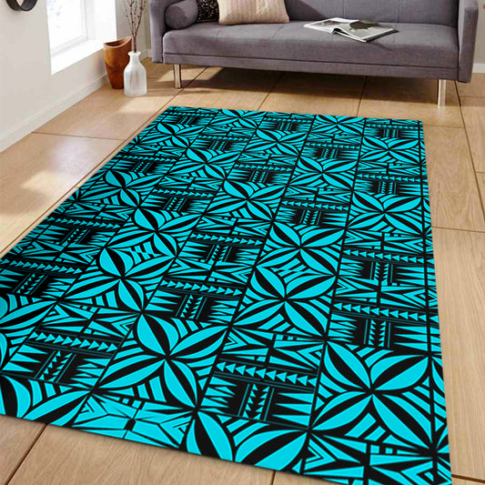 Samoa Area Rug Design Stretch Print Fabric Turquoise