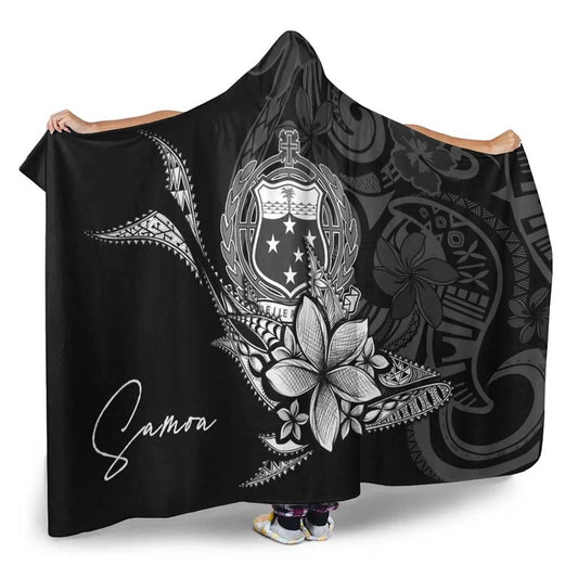 Polynesian Samoa Hooded Blanket - Summer Plumeria (Black)