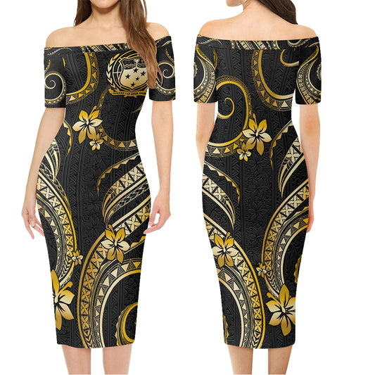 Samoa Combo Short Sleeve Dress And Shirt Golden Polynesian Pattern
