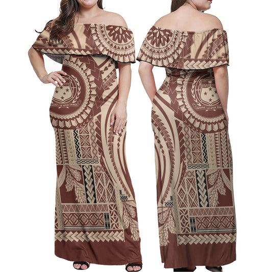 Samoa Combo Off Shoulder Long Dress And Shirt Seal Samoan Siapo Brown Design