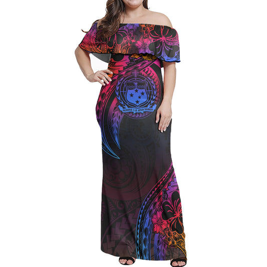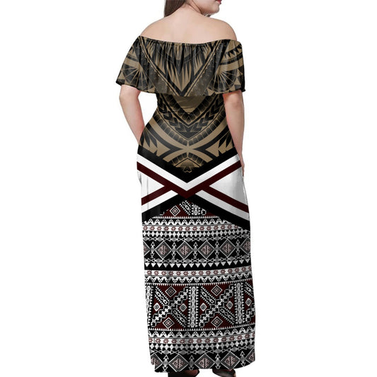 Samoa Combo Off Shoulder Long Dress And Shirt Manu Wings Color Flag Style