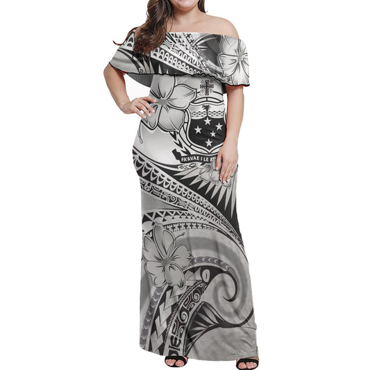 Samoa Combo Off Shoulder Long Dress And Shirt Polynesian Patterns Plumeria Flowers Special Style