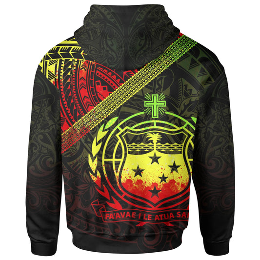 Samoa Custom Personalised Hoodie - Polynesian Patterns With Coat of rms Reggae Color