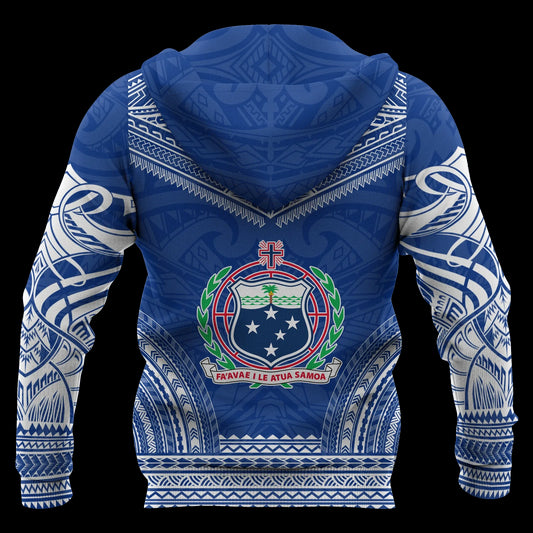 (Custom Personalised Text) Samoa All Over Hoodie - Samoa Coat Of Arms Blue New