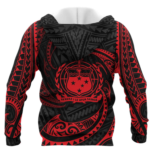 Samoa Polynesian Hoodie - Red Tribal Wave