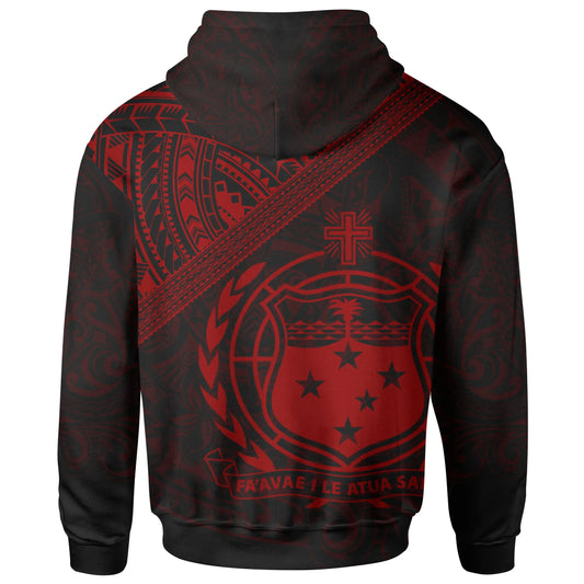 Samoa Hoodie - Samoa Coat Of Arms With Polynesian Tattoo Red