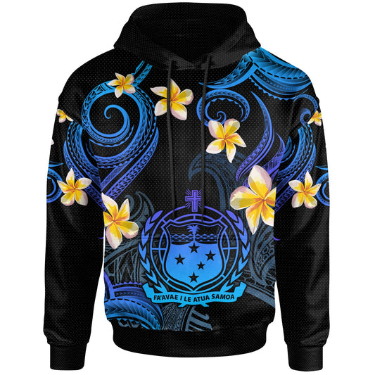 Samoa Hoodie - Custom Personalised Polynesian Waves with Plumeria Flowers (Blue)