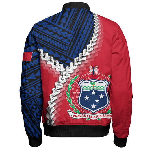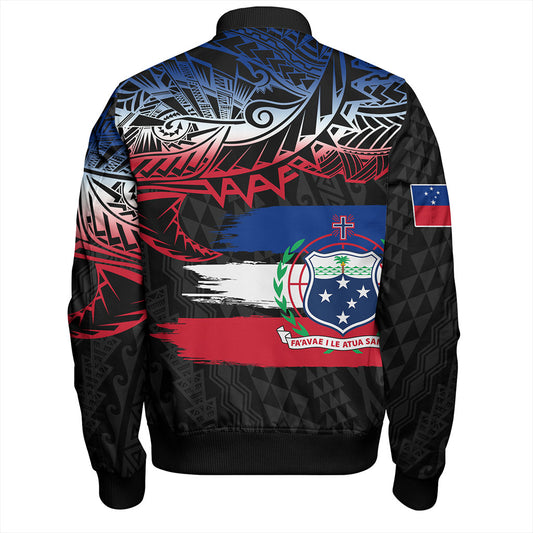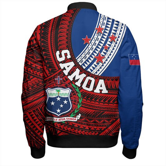 Samoa Bomber Jacket Custom Polynesian Pattern With Coat Of Arms