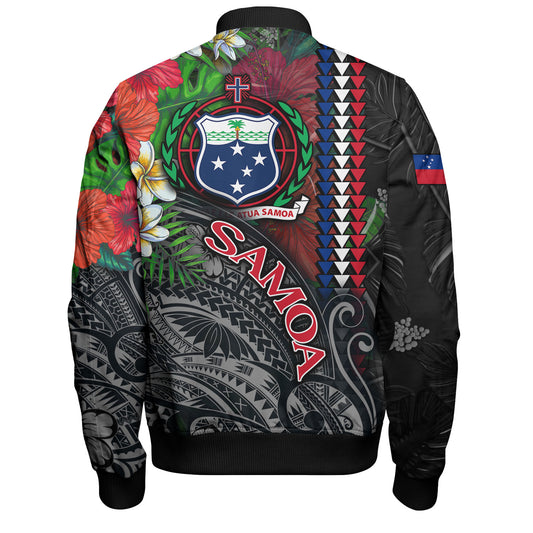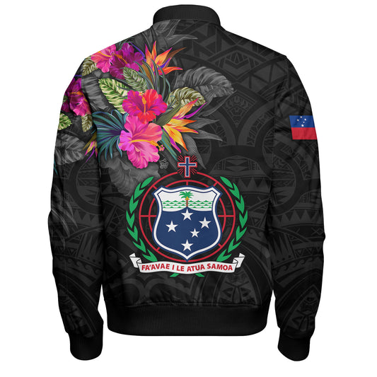 Samoa Bomber Jacket Custom Samoa Coat Of Arms With Tropical Flowers Special