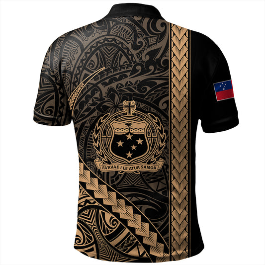 Samoa Polo Shirt Tribal Polynesian Coat Of Arms Gold