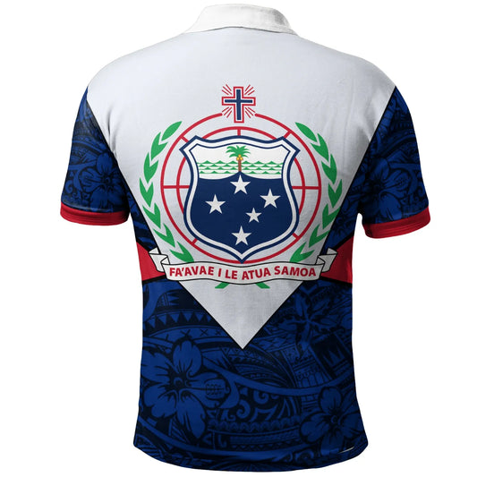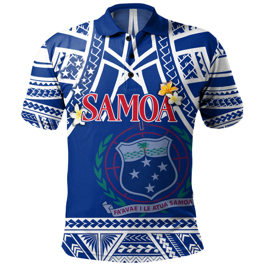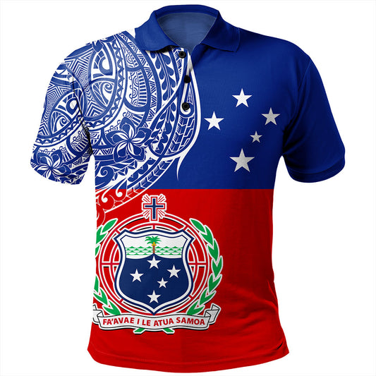 Samoa Custom Personalised Polo Shirt Polynesian Plumeria Flowers Mix Tribal Patterns