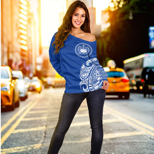 Samoa Off Shoulder Sweatshirt Tribal Pacific Design