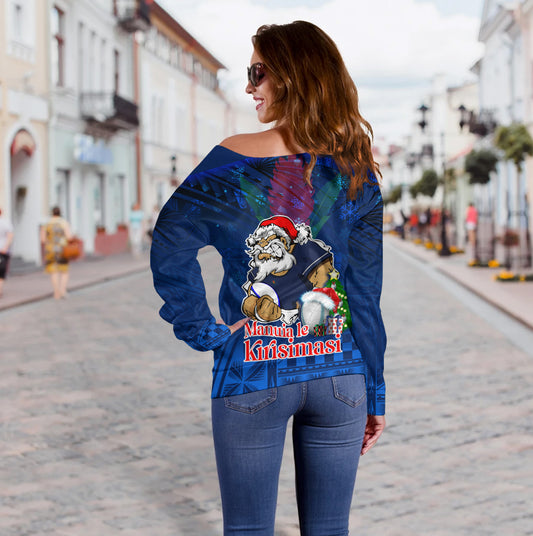 Samoa Off Shoulder Sweatshirt Manuia Le Kirisimasi Rugby Santa Style