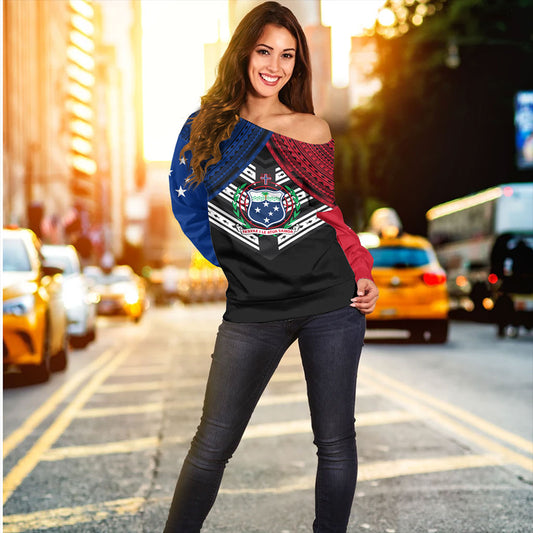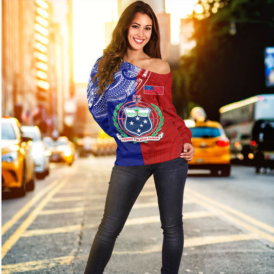 Samoa Off Shoulder Sweatshirt CustomHalf Style Flag And Coat Of Arms