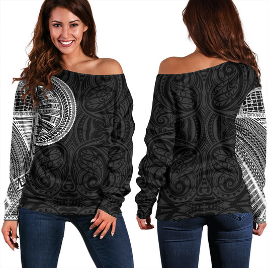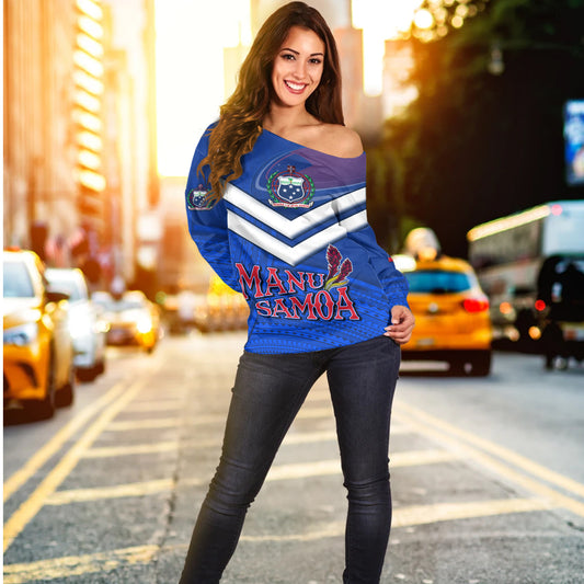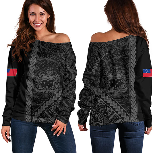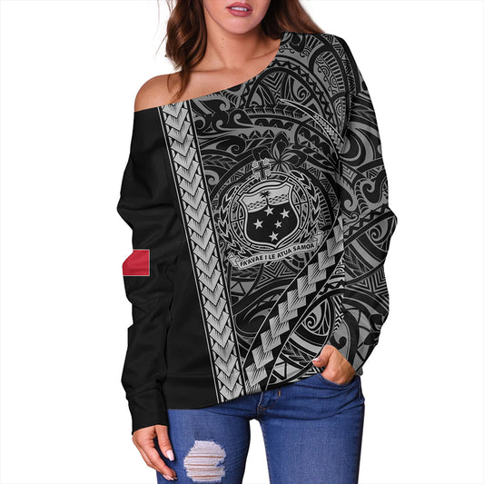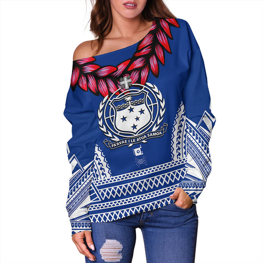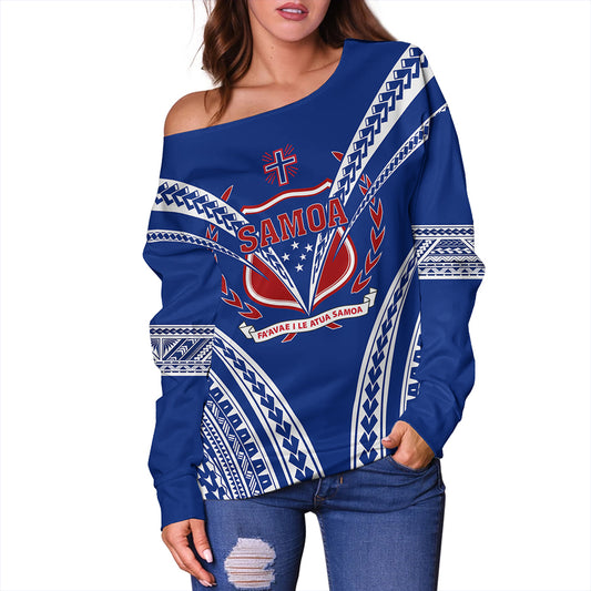 Samoa Off Shoulder Sweatshirt Custom Polynesian Tribal Crest Design