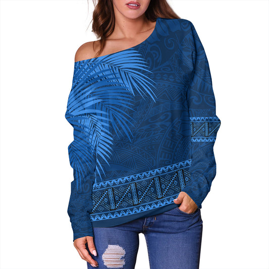 The Samoan Chief Off Shoulder Sweatshirt Blue