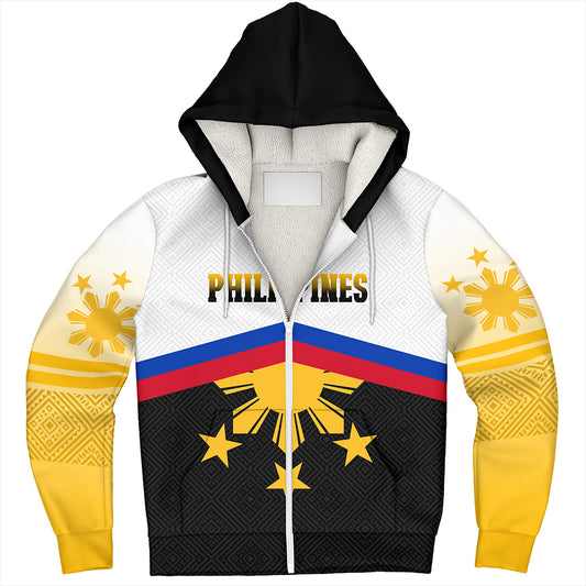 Philippines Filipinos Sherpa Hoodie Lapu Lapu Heroes With Sun And Flag Tribal Patterns