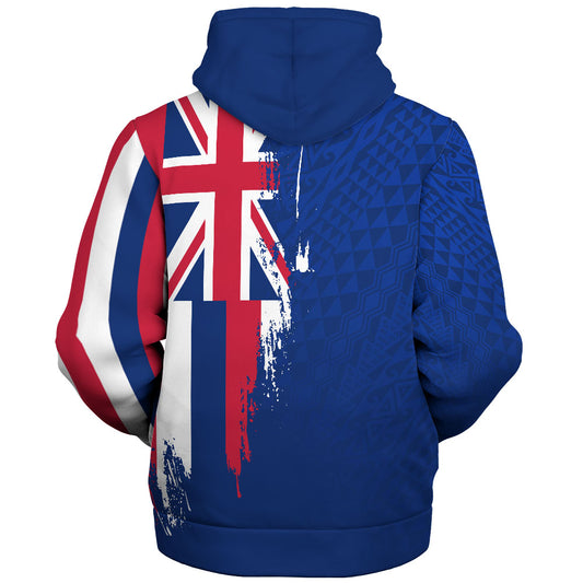 Hawaii Sherpa Hoodie Flag Polynesian Style Ocean Blue