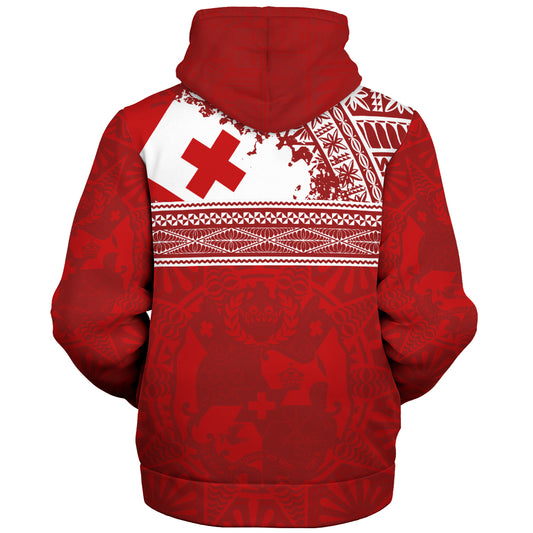 Tonga Sherpa Hoodie Flag Coat Of Arms Circle Ngatu Tribal