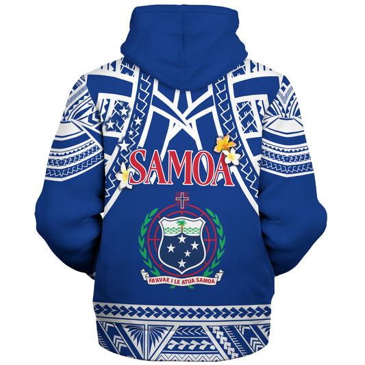 Samoa Custom Personalised Sherpa Hoodie Polynesian Plumeria Flowers Mix Tribal Patterns