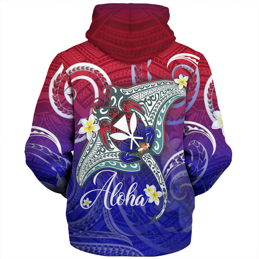 Hawaii Custom Personalised Sherpa Hoodie Kanaka Maoli Manta Ray With Turtle Plumeria Mixed Polynesian Style