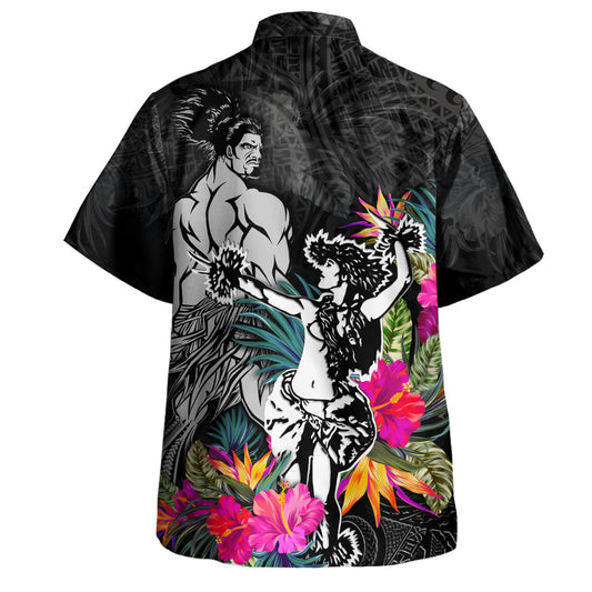 Hawaii Sherpa Hoodie Hawaiian Girl And Warrior With Tropical Flowers