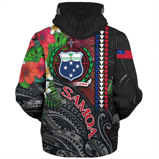 American Samoa Custom Personalised Sherpa Hoodie Seal Tribal Patterns Tropical Flowers Curve Style