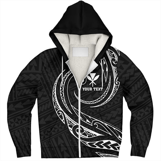 Hawaii Sherpa Hoodie Custom Kanaka Map Polynesian Tribal Wave