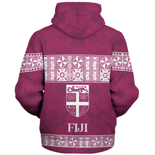 Fiji Sherpa Hoodie Custom Traditional Fijian Masi Pink Color