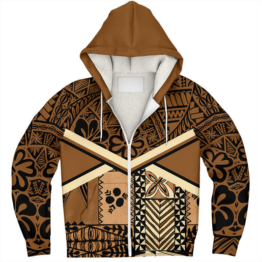 Tonga Sherpa Hoodie Polynesia Island Ngatu Pattern Style
