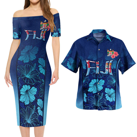 Fiji Combo Short Sleeve Dress And Shirt Fijian Traditional Patterns Hibiscus Flowers