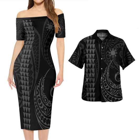 Philippines Filipinos Combo Short Sleeve Dress And Shirt Kakau Style Grey
