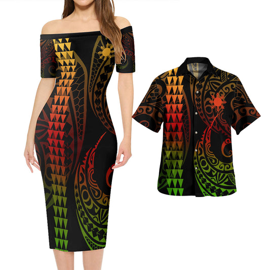 Philippines Filipinos Combo Short Sleeve Dress And Shirt Kakau Style Reggae