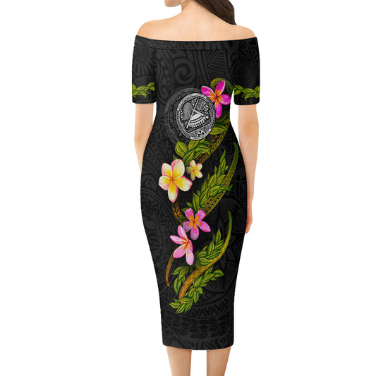 American Samoa Short Sleeve Off The Shoulder Lady Dress Plumeria Tribal