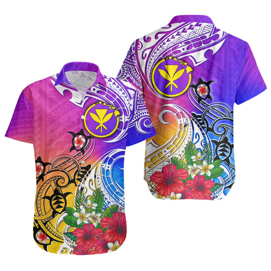 Hawaii Custom Personalised Short Sleeve Shirt Polynesian Tattoo Style Flag Color
