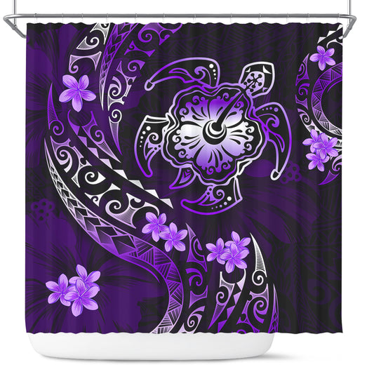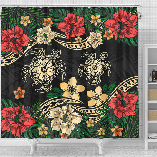 Hawaii Shower Curtain Polynesian Patterns Turtle Couple Hibiscus Plumeria Flowers