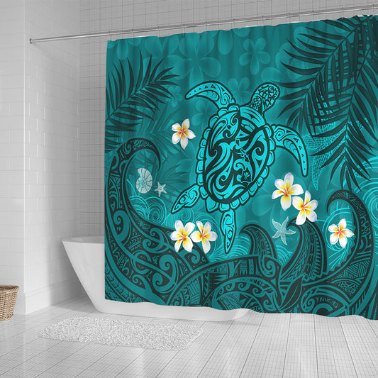 Hawaii Shower Curtain Aloha Island Turtle Plumeria Flower Tropical Fabric