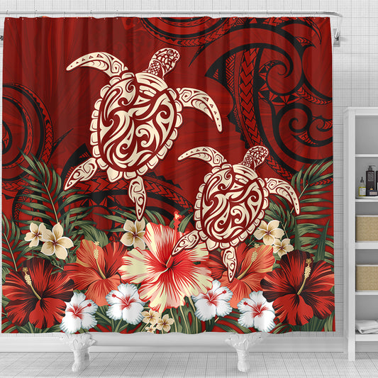 American Samoa Polynesian Shower Curtain - Green Turtle Hibiscus