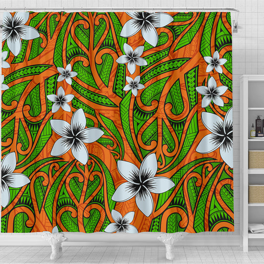 Hawaii Shower Curtain Tribal Tattoo Polynesia Plumeria Flower