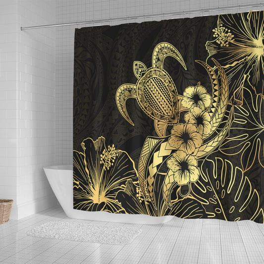Hawaii Shower Curtain Tribal Polynesia Floral Gold Art