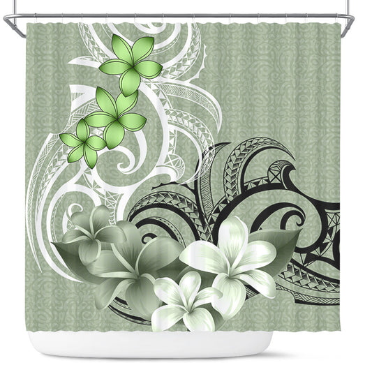 Polynesian Shower Curtain Polynesian Floral Spirit Sage Green