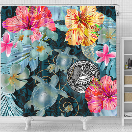 Hawaii Shower Curtain Turtle Design With Hibiscus Tropical Style