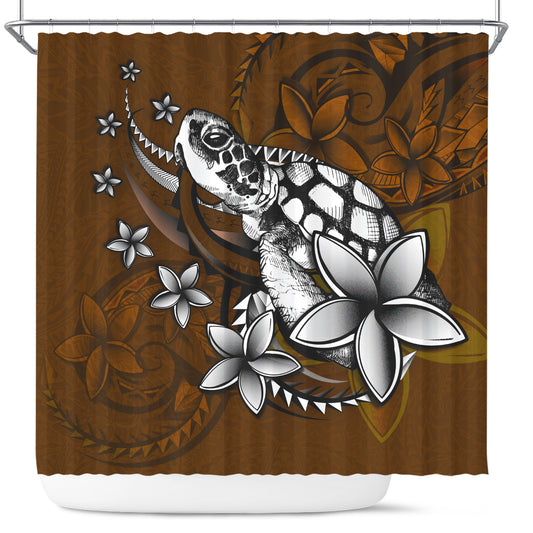 Hawaii Shower Curtain Sea Turtle With Plumeria Polynesian Patterns Retro Style
