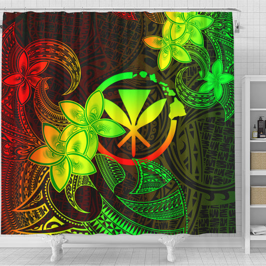 Hawaii Shower Curtain Kanaka Maoli Plumeria Flowers Vintage Style Reggae Colors