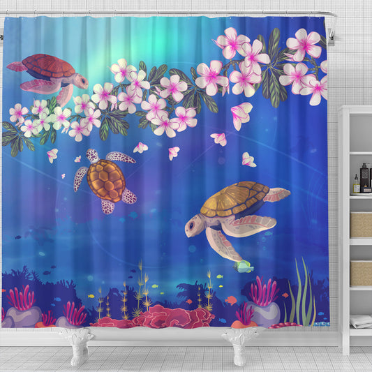 Hawaii Shower Curtain Turtle Plumeria Ocean