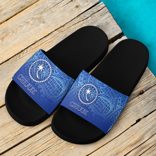 Chuuk State Flag Color With Traditional Patterns Slide Sandals