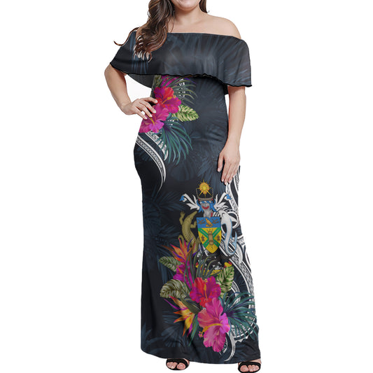 Solomon Islands Combo Off Shoulder Long Dress And Shirt Tropical Flower