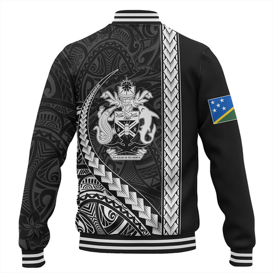 Solomon Islands Baseball Jacket Polynesian Tattoo Flag And Coat Of Arms
